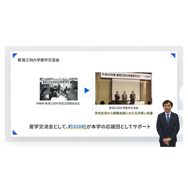 ■YouTubeで、たった3分で、全国でも珍しい企業が立ち上げた新潟工科大学の成り立ちを視聴するガイダンスです。