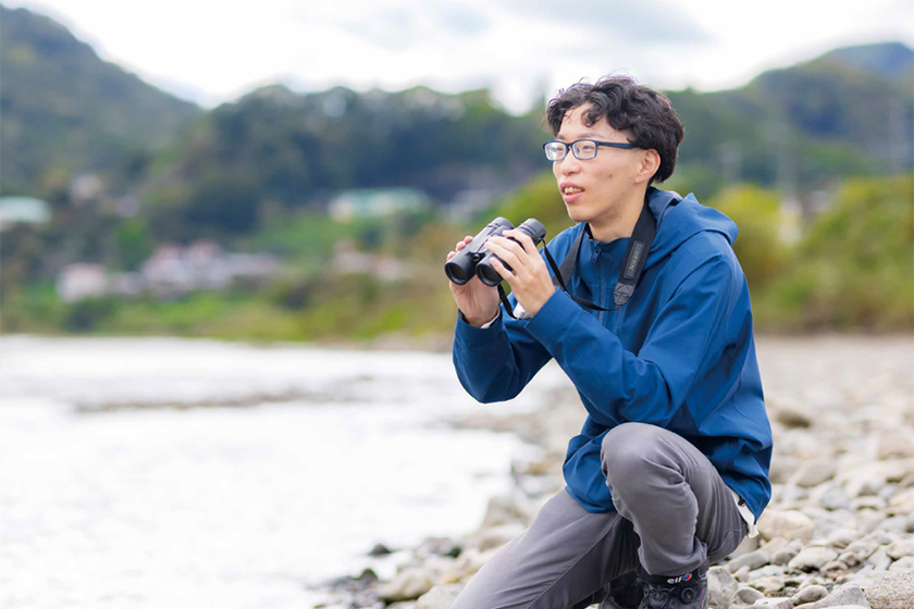 学外実習ではセンサーカメラを設置して奥多摩湖周辺の野生動物の行動を分析しました。現在は「ハシボソガラスのくるみ割り行動」を卒業研究のテーマにし、認知・学習能力の解析につながるのではと考えて河川敷で観察データの蓄積に取り組んでいます。ごく身近にいるカラスの行動が意外で面白いことも発見しました。