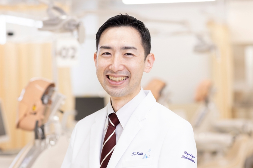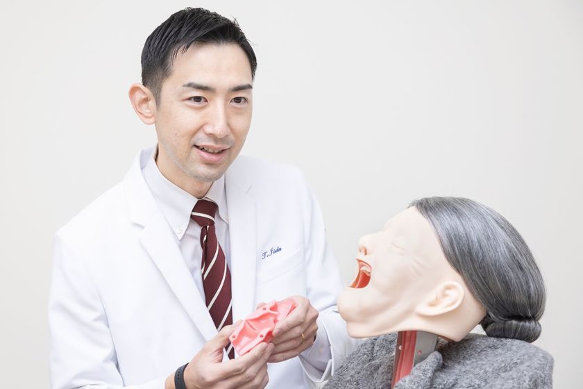 食べる機能・飲み込む機能についての研究や、機能回復の訓練方法の開発なども行っている飯田教授