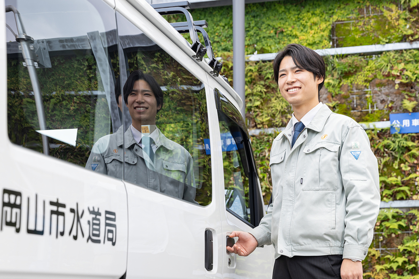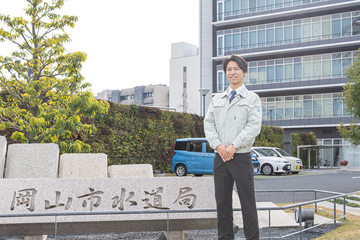 岡山市職員として、市民の生活に直結する水道事業に携わっています。主な担当は集合住宅の水道料金に関する業務です。一般的に水道料金は使用量が多くなるほど高くなるのですが、大きなマンションなどでは不利になるため、それを是正する制度があります。私は該当する建物がその制度の適用要件を満たしているかどうかを審査しています。建物のオーナーさんから相談を受け、問題点が制度によって解決されたときなどはうれしく思います。専門知識を生かして市民の生活を支えられることが、この仕事のやりがいです。またワークライフバランスがとれ、休日は自分のやりたいことをして、しっかりリフレッシュできるのも、公務員の魅力の一つです。