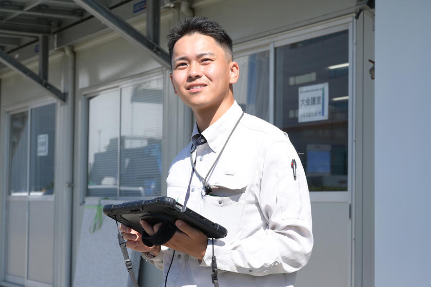 2024年6月に着工した横浜市の公共施設の建設現場で施工管理を担当しています。計画の立案から現場管理まで、工程や品質、安全管理などの施工管理が主な業務です。自分が計画したものが実際に現場に反映され、計画通りに進んだ時の達成感は格別で、なかなか他では味わえないものだと思います。一枚の設計図から始まって、それが形となり、最終的には地域の人々に長く利用される建物になる。その全過程に関わることができ、自分の仕事が社会に貢献していることを実感できるのが、この仕事の大きなやりがいです。