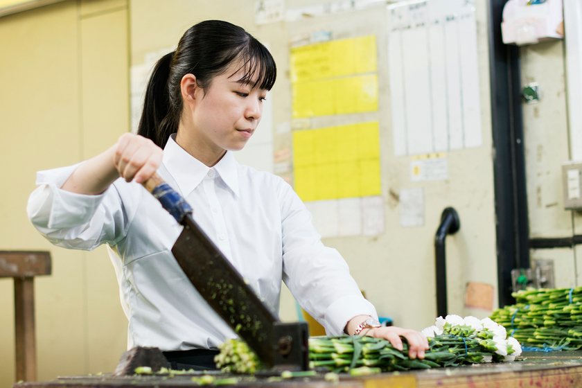 ビジアカで学ぶメリットは、花に関わる仕事をするための基礎的なスキルや知識を身につけられるだけでなく、どの業界に進んでも役立つビジネススキルやマナーを学べること。中でもPC操作や言葉遣いなどをしっかりと教わったことは、社会に出てからとても役に立っています。もう一つ忘れられないのが、現場をよく知る先生方のアドバイス。学生時代に「現場は体力勝負!」と先生方に度々言われ、「お花を扱うのに体力って本当に必要なのかな」と思っていたんです。ところが入社して現場に出てみるとまさに先生の言葉通り! でも、学生時代に言われ続けていたからこそ状況を素直に受け止め、健康・体調管理に気を配れるようになりました。
