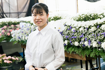葬儀に欠かせない生花祭壇の制作を担当しています。入社1年目は、花の持ちをよくするために欠かせない「水あげ」という作業や、先輩たちのサポートをしながら仕事の流れを覚え、2年目から制作を任されるようになりました。祭壇の大きさにもよりますが、数名のチームで一つの祭壇を仕上げます。葬儀は突然入るため、寒くなる冬や日によっては時間との戦い。見た目が大切な仕事なので、集中力も欠かせません。けれども、お一人お一人の人生の最期をお花によって彩る仕事には大きなやりがいを感じます。納品のため会場に出向いた際、ご遺族の方からお褒めの言葉をいただくこともあり、その瞬間に本当にこの仕事を選んでよかったと思います。
