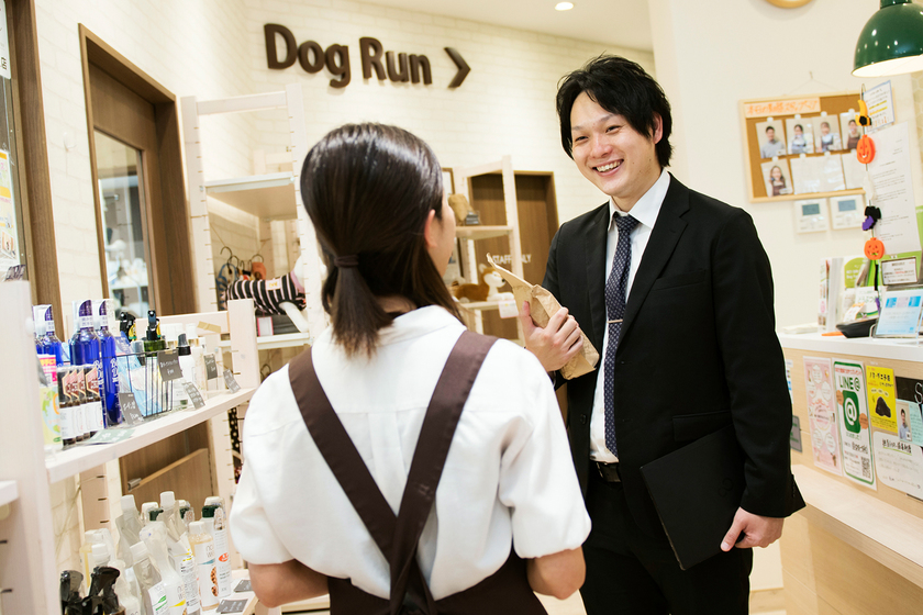 ペットケアサロン「PET-SPA」のエリアマネージャーとして、5店舗の運営管理を担当しています。担当店舗を定期的に訪問し、営業状況などを確認。スタッフが楽しくやりがいを持って働けるように現場の声に耳を傾けながらサポートすることが主ですが、現場で人手が足りない際は、急遽トリミングや接客を行うことも。店舗づくりに欠かせないことのすべてに携わることができるので、視野が広がるし、日々変化があることもこの仕事の魅力です。ペットに関わる仕事というと、トリマーや動物病院などが思い浮かぶ方が多いと思いますが、マネジメントがうまくいかなければスムーズな運営ができません。ペットビジネスの奥深さを実感しています。