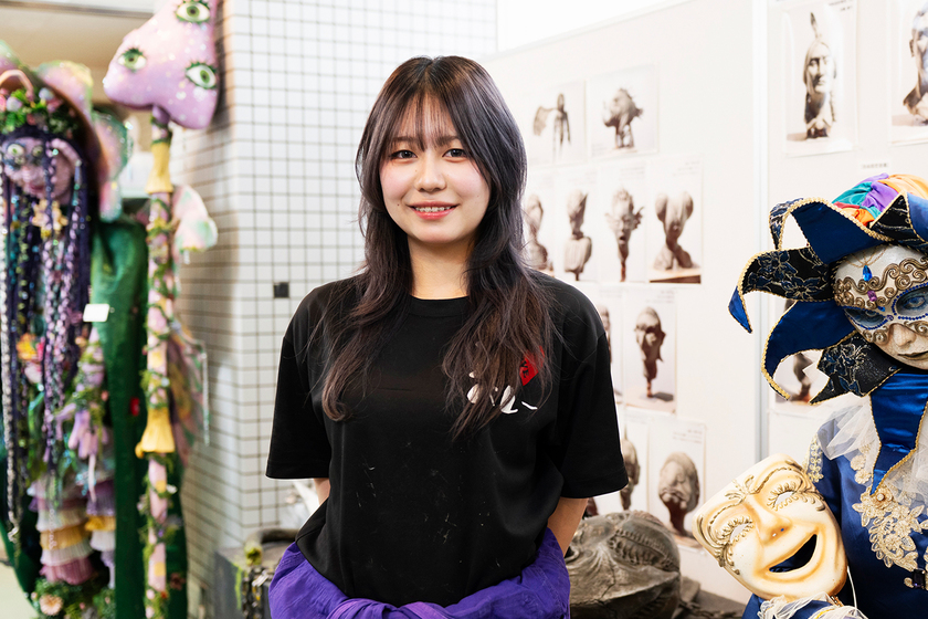 映画に関わる仕事がしたいと考えていて、中でも興味を持ったのが特殊メイク。母に「モノづくりが好きだし、見学に行ってみたら」と勧められてオープンキャンパスへ。明るい雰囲気で、楽しそうだなと感じました。