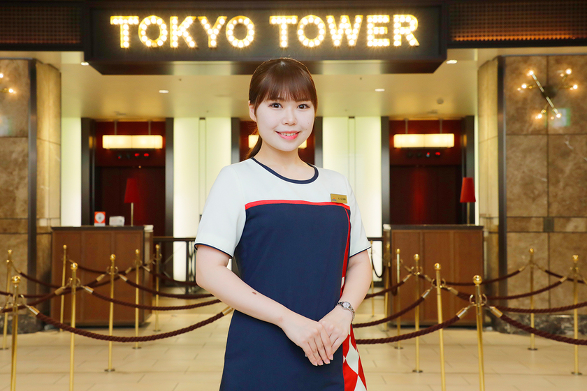 東京タワーでの接客業務が、今の仕事です。施設について説明したり、ご質問にお答えしたりしながら、お客様にご満足いただけるよう日々頑張っています。やりがいは、お客様から「ありがとう」「楽しかった」などの言葉をいただけること。以前、韓国からの観光客のトラブルに韓国語で話しかけ、解決したことがありました。お帰りの際に偶然お会いしたところ覚えていてくれて、わざわざ感謝の気持ちを伝えていただいたことが今も心に残っています。いつでも笑顔を忘れずに、常にお客様の立場に立ってご案内ができるよう努力していきたいです。今後は自分のスキルを向上させつつ、他のスタッフをサポートできる存在になりたいと思っています。
