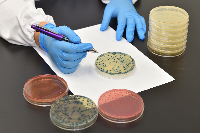 食品や医薬品、化粧品などに含まれる菌の状況を調べる微生物検査を行っています。西日本各地の営業所から届く検体を処理し、ピペットでシャーレの寒天培地に分注するチームと、増殖させた微生物の数をカウントして成績書を作成するチームに分かれて作業を進めます。午前中に積み上がった800~900枚のシャーレがどんどん減って視界が広がり、すべての処理と掃除まで終業時間までに完了させることができた時の達成感は格別です。微生物検査は、多くの人々の安全や安心を裏側で支える、縁の下の力持ち的な存在。そんな大切な仕事を通じて世の中に貢献できていることは、とても誇らしく、いつも大きな意義を実感しています。