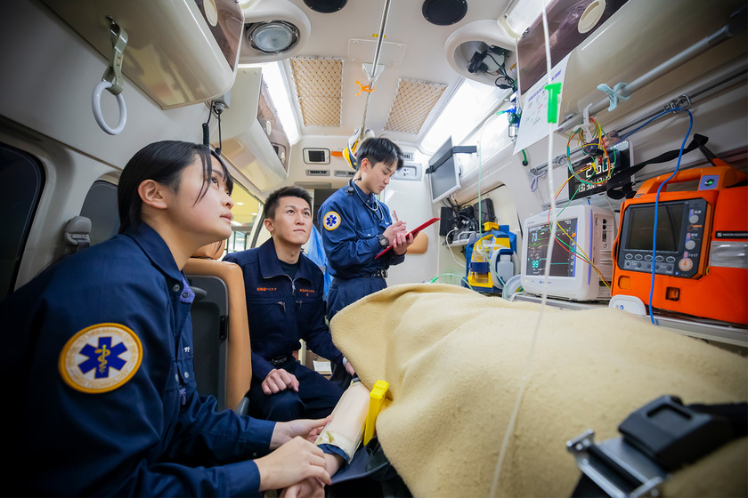 高校生の頃は、看護師と救急救命士の違いがよく分からず、進路に迷っていました。だからこそ、オープンキャンパスに参加して実際の雰囲気を知ることが大切だと感じています。可能であれば、卒業生の話を聞くことで、進路のイメージがより具体的になります。救急救命士の働き方は病院によって異なり、院内中心の業務もあれば、搬送業務に多く関わる職場もあります。自分がどのように医療に関わりたいのかを考えた上で、進路を選ぶことが重要だと思います。これからも学びを重ねながら、実技や資格にも挑戦し、より多くの救命活動に貢献していきたいと考えています。