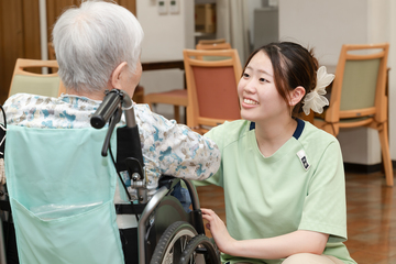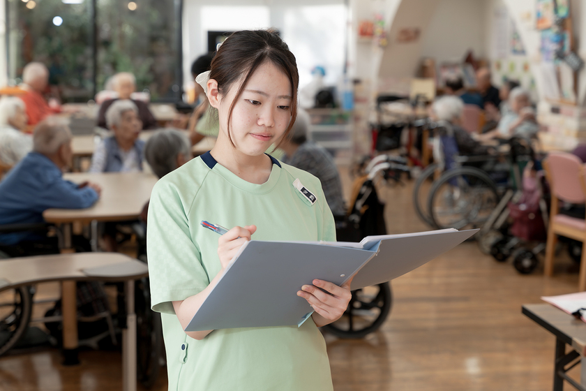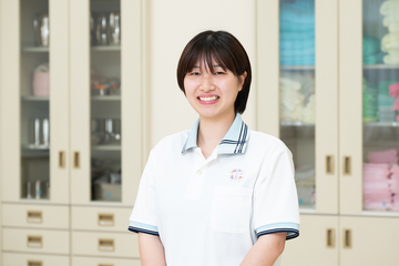 介護福祉士として、利用者の食事や入浴などの生活介助を行っています。力がいる仕事ではありますが、実際には介助よりも、コミュニケーションを通して利用者が求めていることを理解し、実践するためにどうしたらいいかと考えることに多くの時間を使っています。だからこそ、介助を通して笑顔が見られたり、歩けるようになったり、感謝の言葉をいただいたりしたときにやりがいを強く実感します。私の勤務する施設では、自立した生活をしている利用者も多く、高齢者の場合、転倒や骨折にも注意が必要です。一人ではできることも限られますが、利用者をはじめ職員の皆さんと一緒に頑張れることも、この仕事の楽しさだと思います。