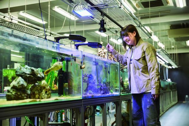 A サンゴの飼育に力を入れています!色鮮やかに育て、繁殖させるため塩分濃度や水質を測定し、理想的な環境づくりを実践しています。展示の美しさを保つため、水槽の苔掃除や苔の発生を防ぐ工夫も日々考え、取り組んでいます。