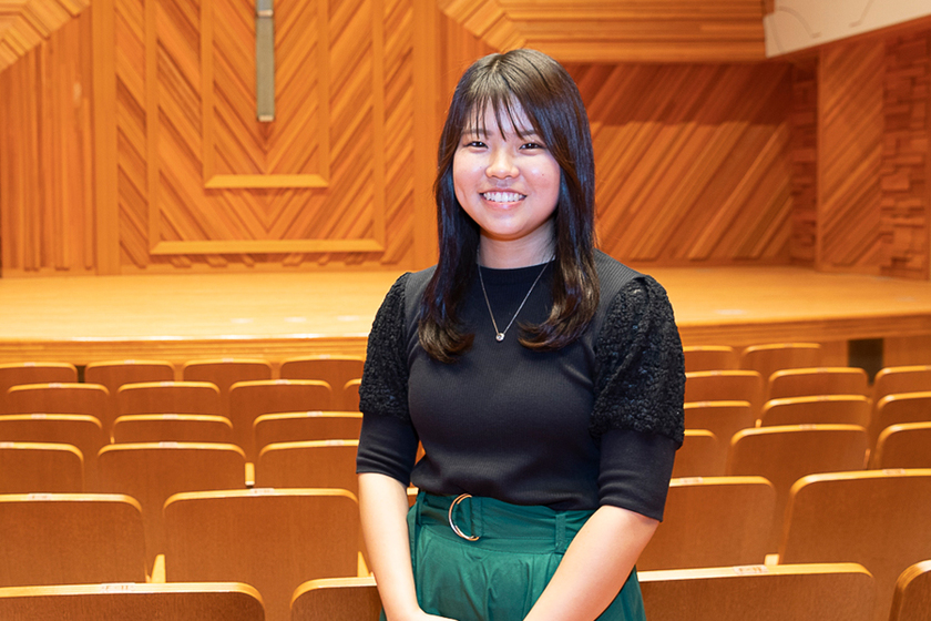 音楽の先生を目指して、本学を選びました。この学校は教員免許を取るために音楽を学ぶのではなく、音楽を専門的に学び、音楽の知識を幅広く身につけながら教職課程も履修できるという印象を持ったのが理由です。