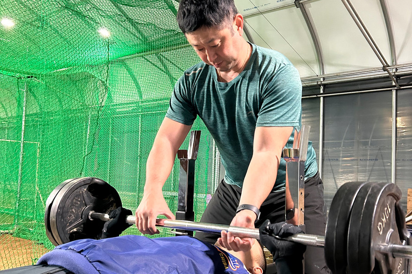 野球塾で、高校生にトレーニングを指導中。「レジスタンストレーニング」で体力づくりをサポートします。