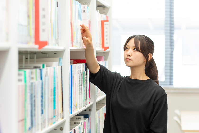 調べ物がある時は専門書が揃う図書館へ。実習スペースもあります