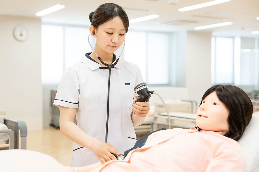 福岡歯科大学をはじめ、福岡学園の医療系大学や総合病院と連携して、実践的に学ぶ環境が整っています。なかでも本学の特色は、口腔を起点とした健康支援の技術を学べることです。授業では通常の看護学にプラスして、口腔疾患やその影響を受ける全身疾患についても学び、福岡歯科大学との合同演習で技術面も習得します。さらに、1年次の実習から、可能な限り受け持ちの患者様の口腔状態を評価して実践力を磨いています。
