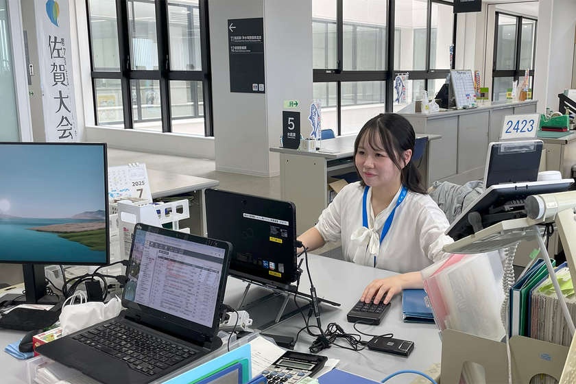 唐津市役所の農林水産部農地林務課で、農業支援施設の維持管理や農地災害復旧の事務処理を担当しています。農業施設や交流施設など、建設に携わった施設が完成を迎えた瞬間は本当にやりがいを感じます。技術職ではなく事務方として予算作成や契約書類の作成が主な業務ですが、裏方として支える中でも、実際に完成した施設を見に行くと大きな達成感があります。高校時代は小学校の教員に憧れていましたが、市役所の仕事を続けるうちに自分に合っていると実感するようになりました。将来的には教育委員会やこども家庭課での勤務も希望しており、教員免許も活かしながら、障害児支援など幅広い可能性を視野に入れています。