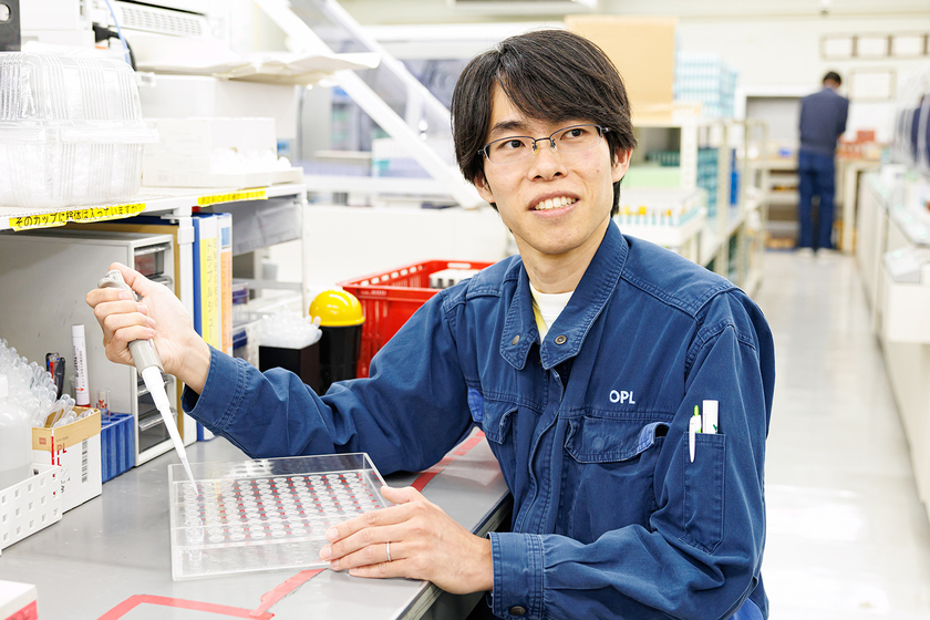 株式会社オー・ピー・エル(OPL)勤務/医療医薬分析学科/2014年卒業/業界初の臨床検査受託総合ラボの合弁会社として設立した企業に就職した田代さん。臨床検査の品質と能力に関する国際標準マネジメントシステム規格であるISO15189認定を取得する際には、申請書類などの作成にも活躍した。専門学校での経験を活かした分析器具を取り扱う速さと正確さでは高く評価されている。結婚3年目で1児のパパ。「家に帰って子どもと遊ぶのが、一番の気分転換になりますね。仕事終わりにはバイクを飛ばしてまっすぐ帰宅しています。昔から良く言われていますが、目に入れても痛くないくらいかわいいです」。